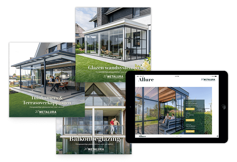 Op zoek naar inspiratie voor de producten van Metalura? Vraag ons gratis inspiratieboek aan en krijg toegang tot de online Allure boordevol inspiratie over onze comfortabele en onderscheidende producten. Daarnaast ontvangt u ook de glazen wandsystemen-, tuin- of balkonbrochure met interessante informatie!
